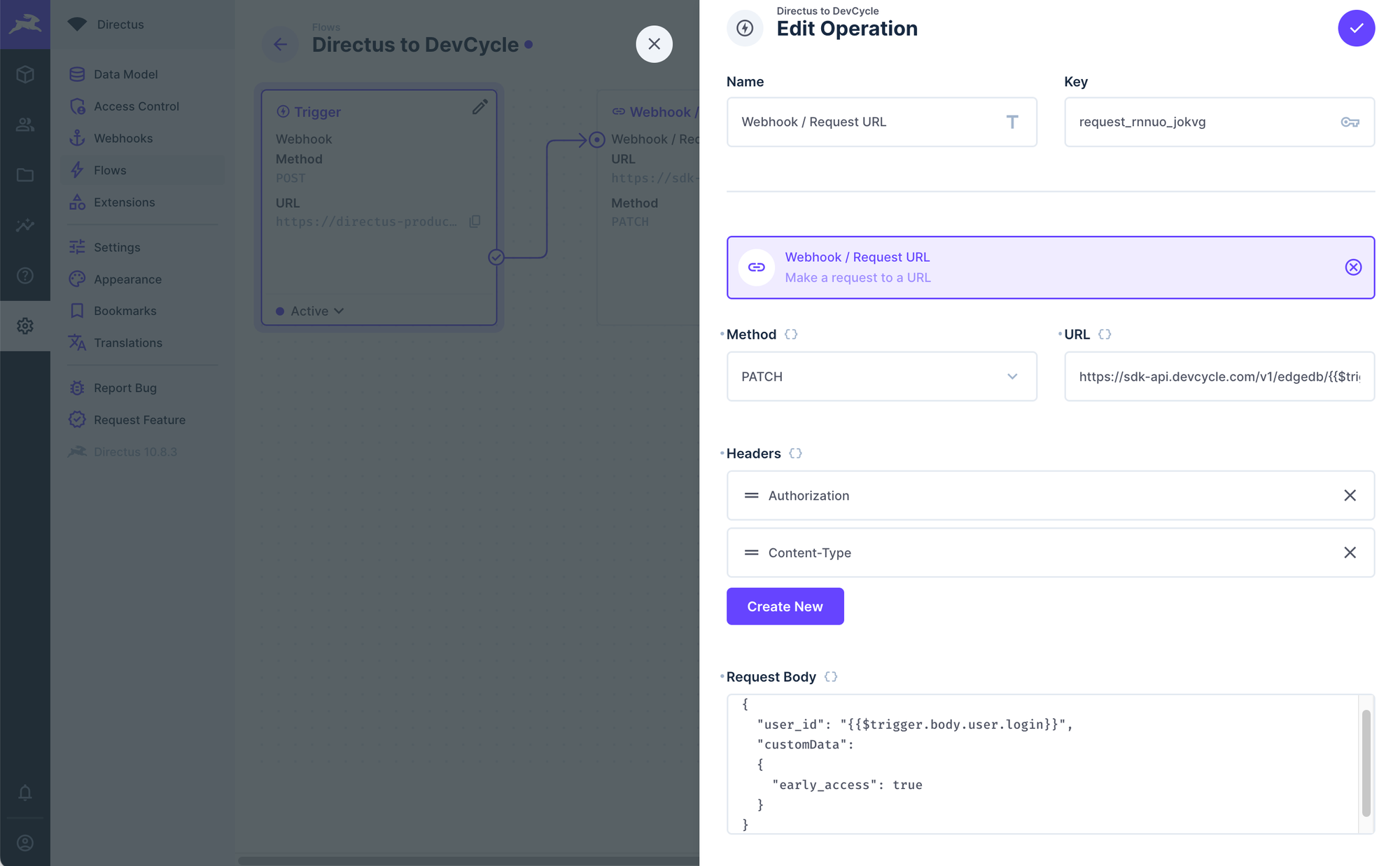 2d. Create a DevCycle to Directus Flow