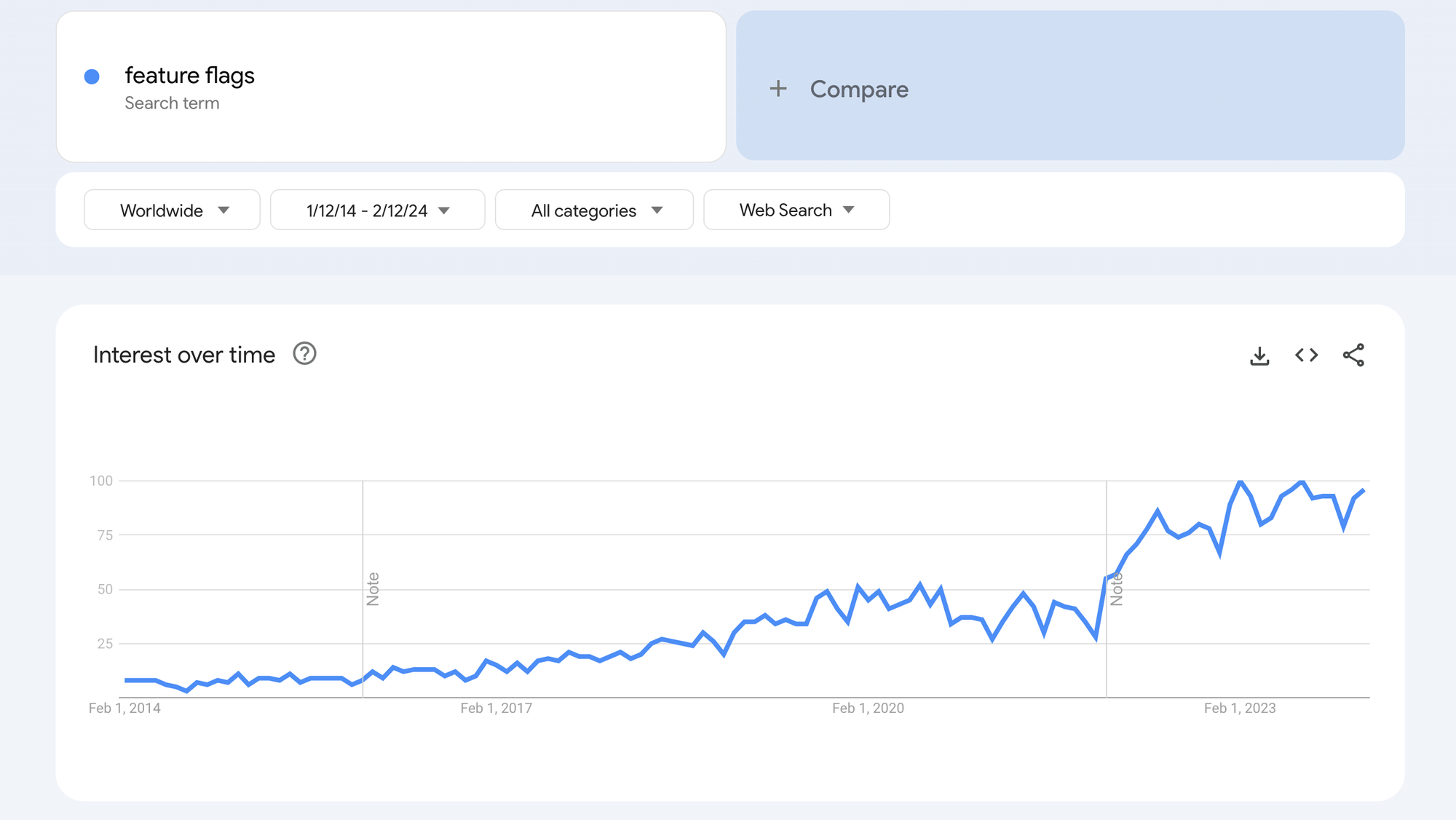 Have you noticed the buzz around feature flags lately? It's not just you—they've truly exploded in popularity. In just the past five years, the average search traffic for feature flags on Google has tripled!